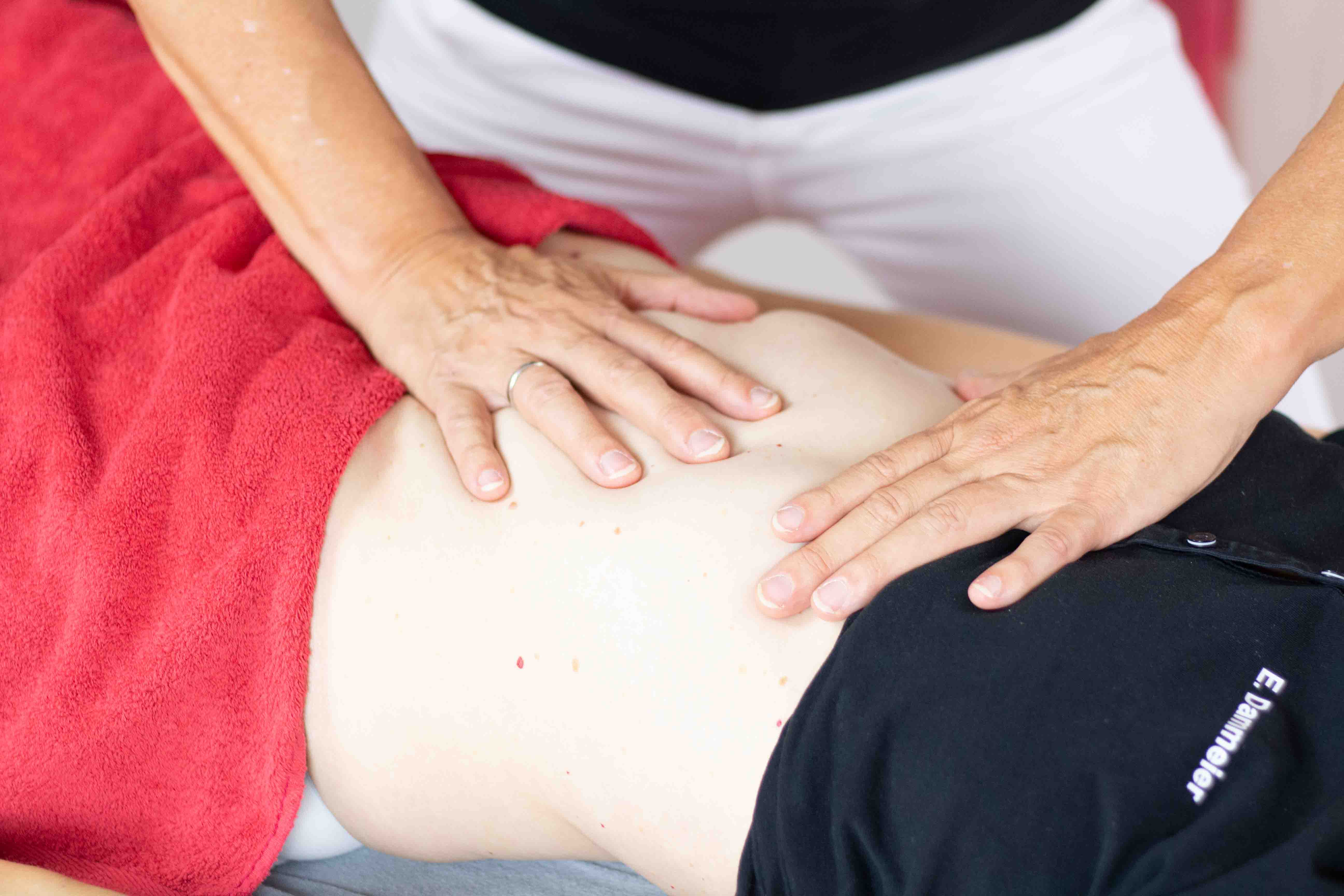 Kompressionsspannung auf andere Organe. Die Therapeutin führt Techniken mit den
