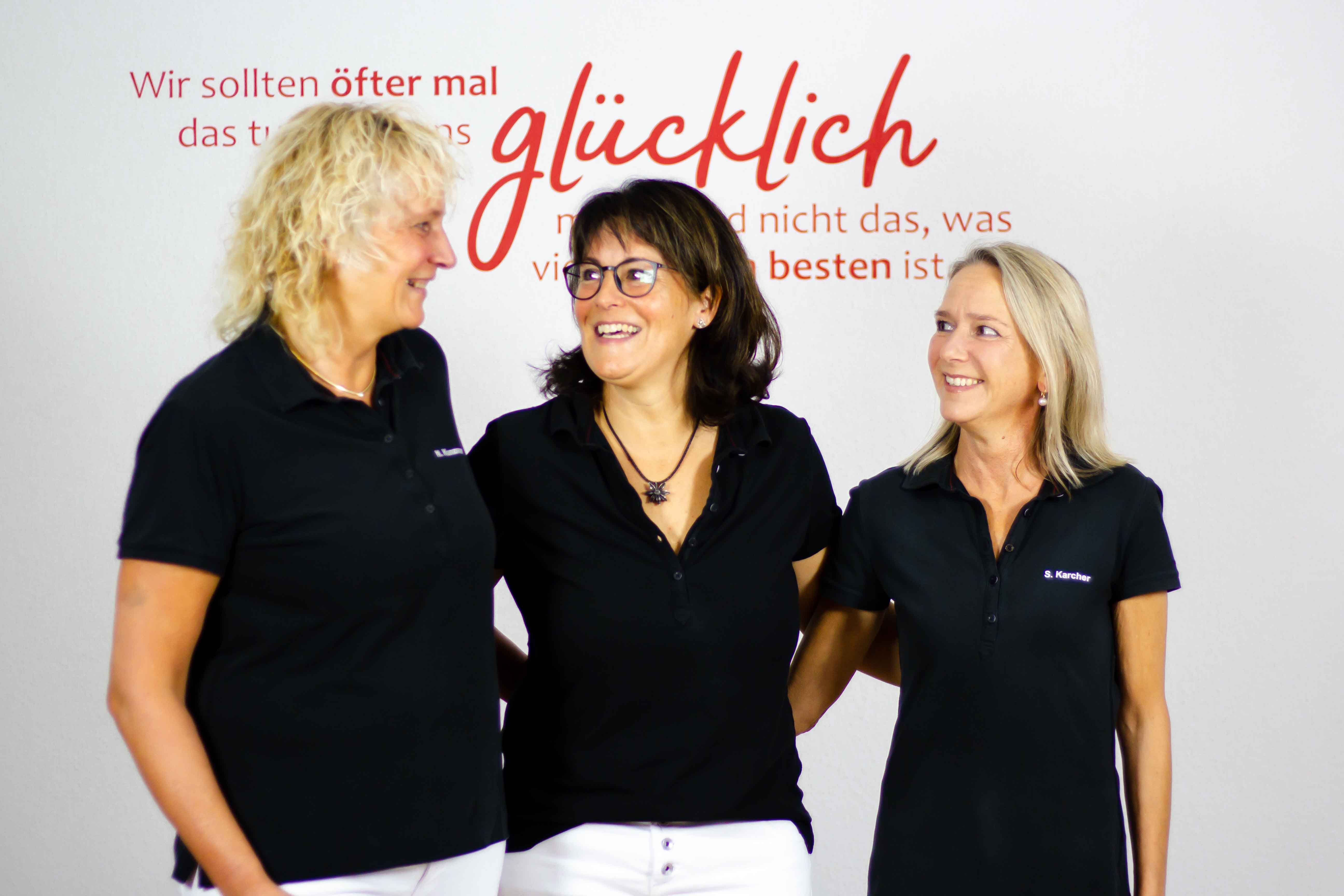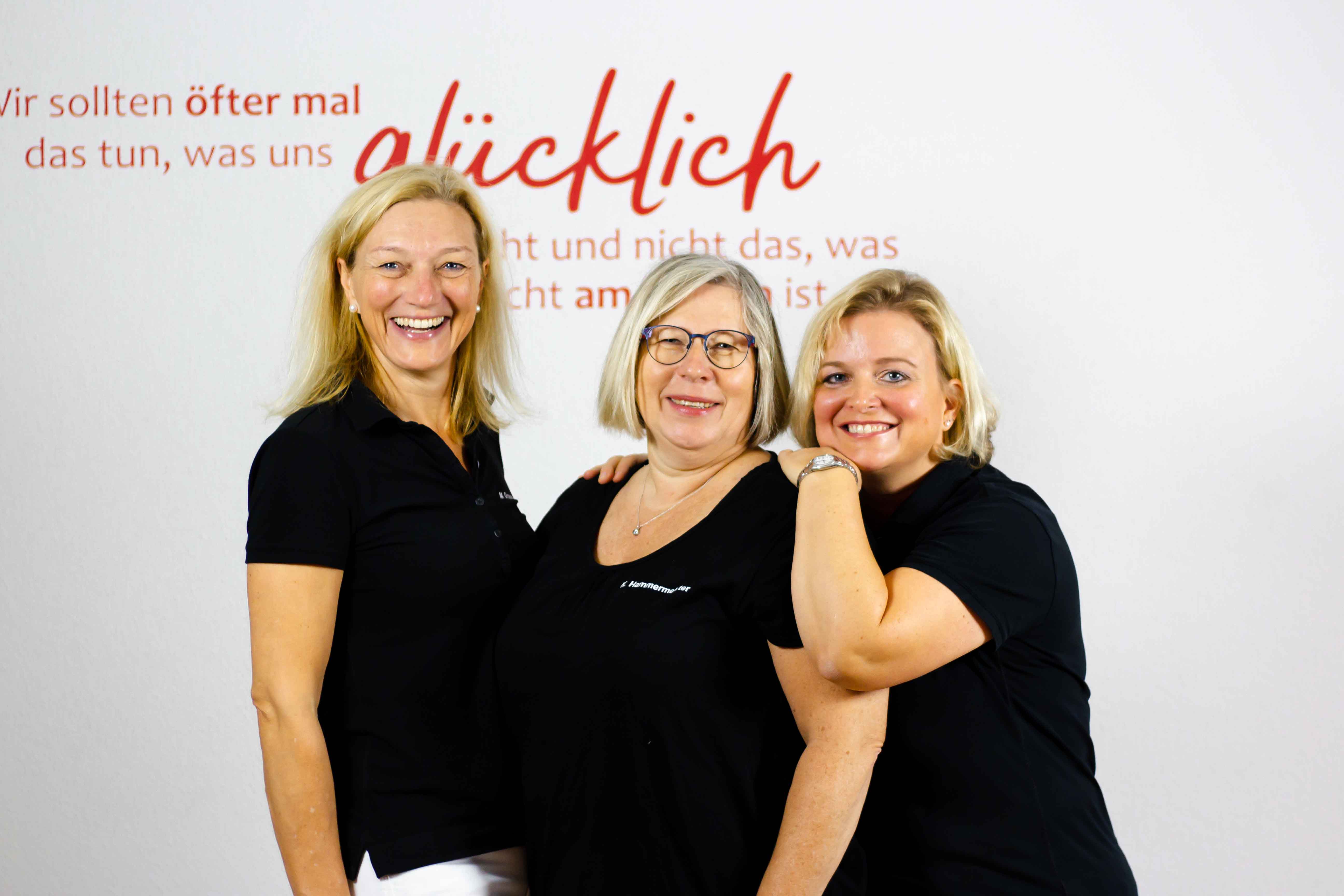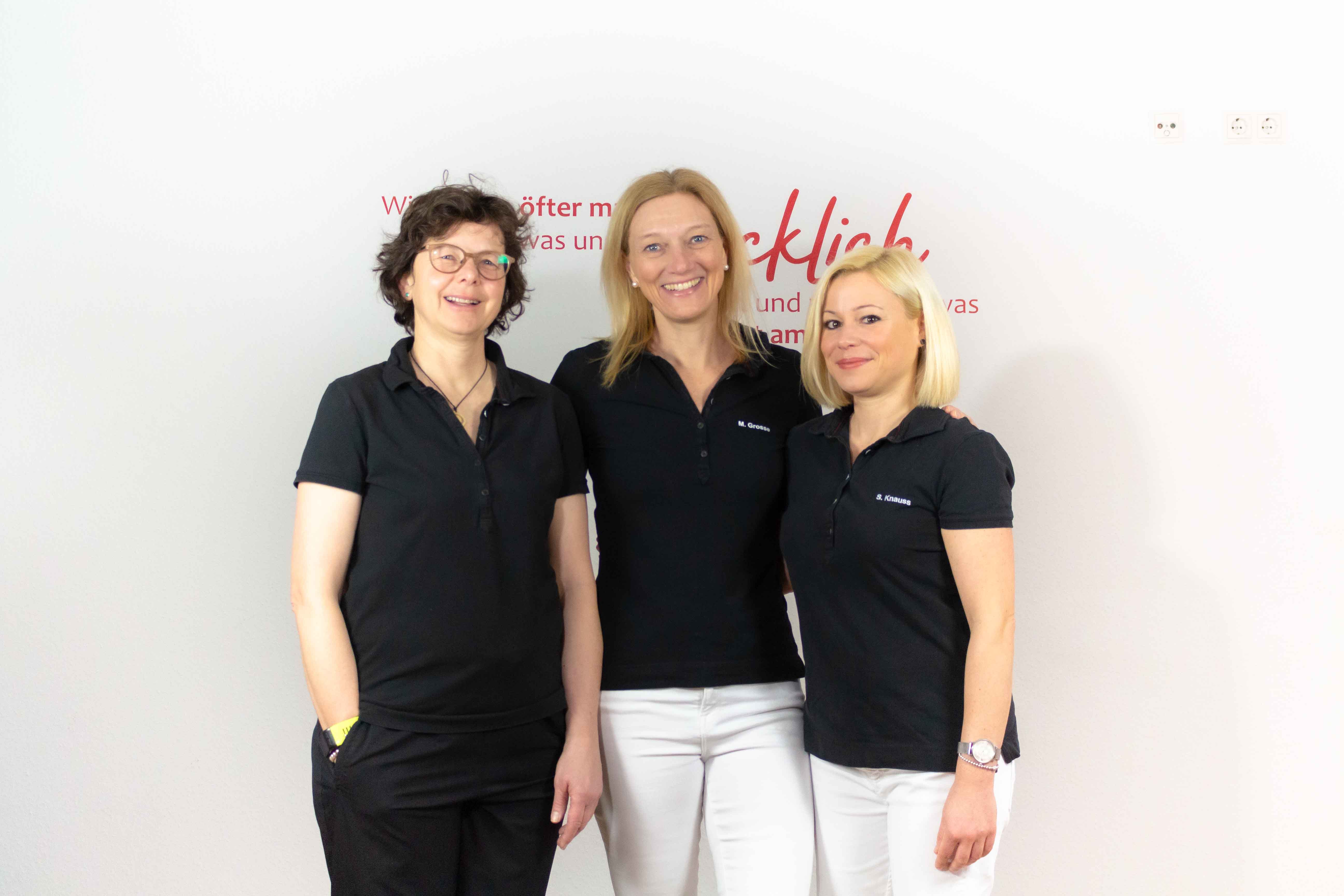 Was die Praxis Grosse besonders auszeichnet, ist ihr starkes Team: 16 Frauen von Anfang 40 bis Mitte 60, die mit viel Erfahrung und Leidenschaft alles dafür tun, damit es Ihnen besser geht. Wer sind diese Frauen und was zeichnet sie aus? Zunächst einmal: Ihr Lachen, denn jede Mitarbeiterin können Sie anhand ihres Lachens erkennen, das durch die Praxis schallt. Und dann: Ihre Fachkompetenz und Fröhlichkeit, Ihre Flexibilität und Fürsorge. Für Sie und füreinander. Das ist das Team der Praxis Grosse.